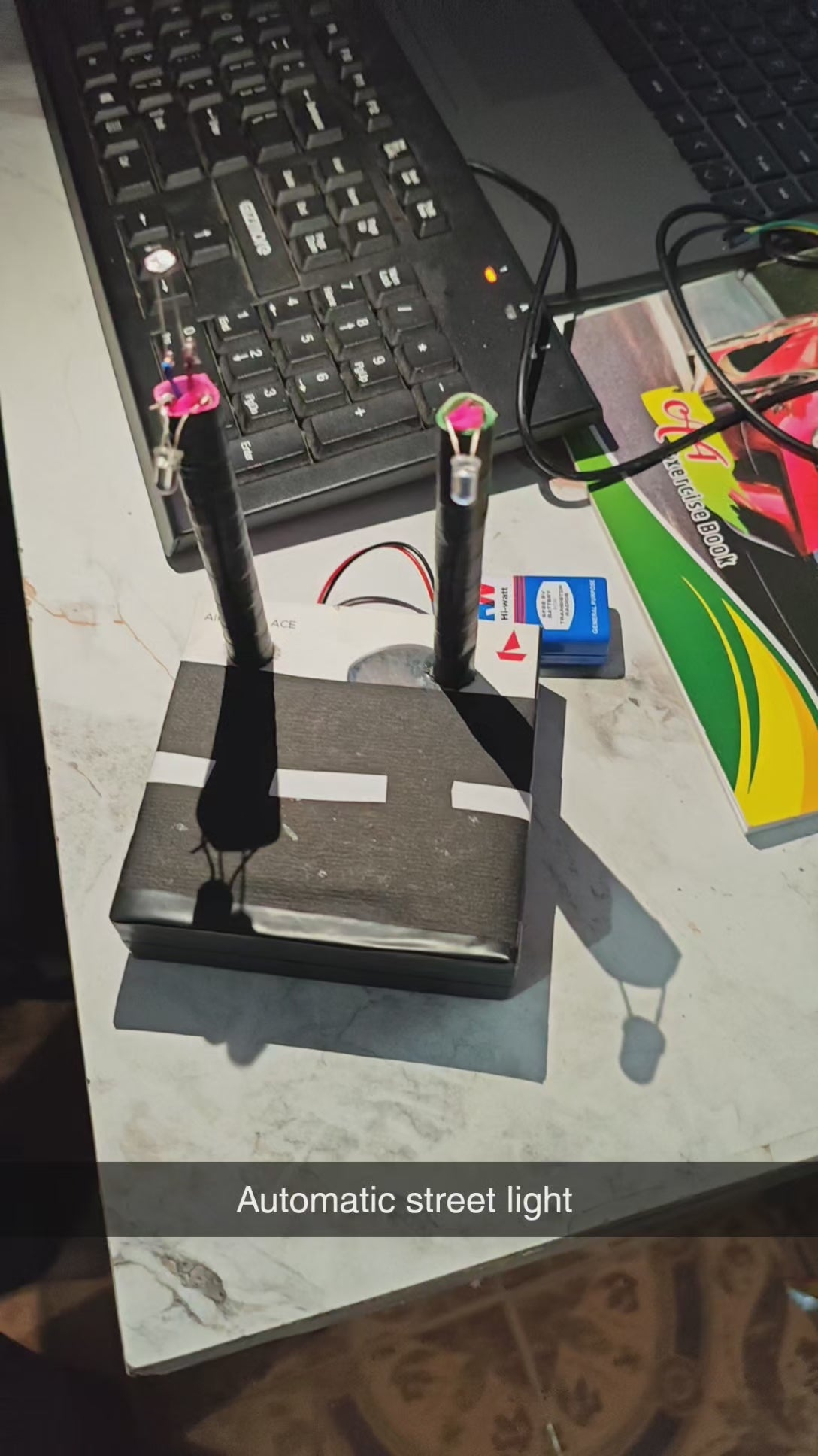 This project demonstrates an automatic lighting system that turns ON when it becomes dark and switches OFF in daylight. The LDR senses ambient light levels and activates the LED through a transistor-based switching circuit. It helps students understand the concept of light sensing, voltage divider operation, and automated control systems. Ideal for school exhibitions and home automation demonstrations.